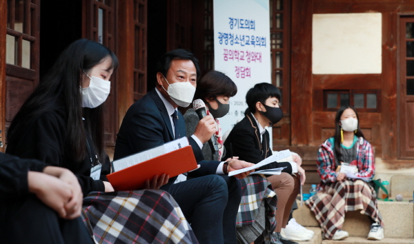 ÇÑÆí, À̹ø Á¤´ãȸ´Â ¹Î»ý ¹× ±³À°ÇöÀåÀÇ ¾î·Á¿òÀ» ÆÄ¾ÇÇϰí È¿°úÀû Áö¿ø¹æ¾ÈÀ» ¸ð»öÇϱâ À§ÇØ °æ±âµµÀÇȸ°¡ ÃßÁø ÁßÀÎ ¡®Ã£¾Æ°¡´Â ÇöÀå µµÀÇȸ¡¯ÀÇ ÀÏȯÀ¸·Î ÁøÇàµÆÀ¸¸ç, ¾Õ¼ Àå ÀÇÀåÀº Áö³ 6ÀÏ ÆÄÁÖû¼Ò³â±³À°ÀÇȸ¿¡¼, 15ÀÏ¿¡´Â ½ÃÈïû¼Ò³â±³À°ÀÇȸ¿¡¼ °¢°¢ û¼Ò³âµé°ú Á¤´ãȸ¸¦ ½Ç½ÃÇÑ ¹Ù ÀÖ´Ù.