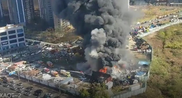 ¼Ò¹æ´ç±¹Àº °í¹°»ó¿¡¼­ ºÒÀÌ ³­´Ù´Â 119½Å°í¸¦ ¹Þ°í ¼Ò¹æ ´ë¿ø 51¸í°ú ÅÊÅ©Â÷, ÆßÇÁÂ÷ µî Àåºñ 26´ë¸¦ ÅõÀÔÇØ ÁøÈ­ ÀÛ¾÷À» Çϰí ÀÖ´Ù.