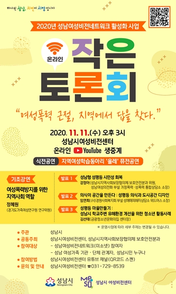 ¼º³²½Ã´Â ¿À´Â 11ÀÏ ¡®¿©¼º Æø·Â ±ÙÀý, Áö¿ª¿¡¼ ´äÀ» ã´Ù¡¯¸¦ ÁÖÁ¦·Î ÇÑ ¿Â¶óÀÎ Åä·Ðȸ¸¦ ¿¬´Ù.