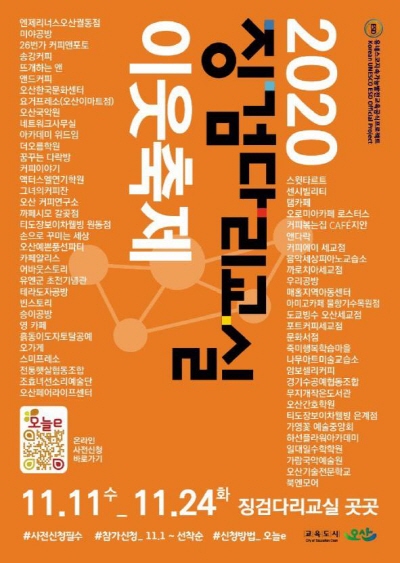 ¿À»ê½Ã(½ÃÀå °û»ó¿í)°¡ ¿À´Â 11¿ù 11ÀϺÎÅÍ 24ÀϱîÁö ¡®2020 ¡°Ë´Ù¸®±³½Ç ÀÌ¿ôÃàÁ¦¡¯¸¦ °³ÃÖÇÑ´Ù°í ¹àÇû´Ù.