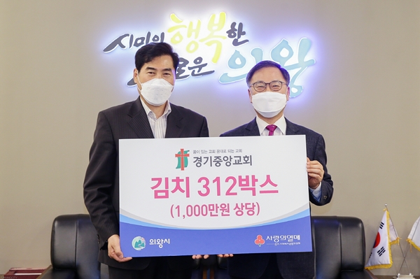 Áö³ 16ÀÏ Àǿսà ¿ÀÀüµ¿¿¡ ¼ÒÀçÇÑ °æ±âÁß¾Ó±³È¸¿¡¼ 16ÀÏ Áö¿ªÀÇ Àú¼ÒµæÃþ¿¡°Ô ÀüÇØ´Þ¶ó¸ç 1,000¸¸¿ø »ó´çÀÇ ±èÄ¡(10kg) 312¹Ú½º¸¦ Àǿսÿ¡ Àü´ÞÇß´Ù.