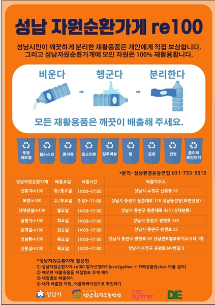 ¼º³²½Ã´Â Àü±¹ ÃÖÃÊ·Î ÀçȰ¿ëÀÌ °¡´ÉÇÑ ¾²·¹±â¸¦ °¡Á®¿À¸é Çö±ÝÀ̳ª Áö¿ªÈ­Æó·Î º¸»óÇØÁÖ´Â ¡®ÀÚ¿ø¼øÈ¯°¡°Ô re100(recycling 100%)À» 2021³â±îÁö 10°³¼Ò·Î È®´ëÇÒ ¿¹Á¤À̶ó°í ¹àÇû´Ù.