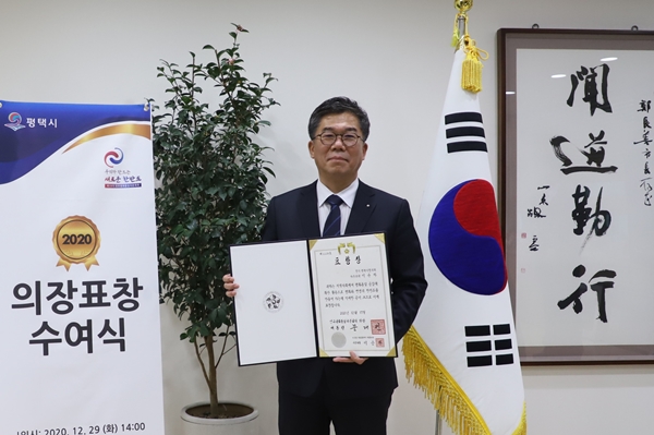 ÆòÅýÃÀÇȸ ÀÌÀ±ÇÏ ÀÇ¿øÀº Áö³­ 29ÀÏ ÆòÅýÃÀå Áý¹«½Ç¿¡¼­ ¡®¹ÎÁÖÆòÅëÀÚ¹®È¸ÀÇÀÇÀå‧°æ±âµµÁö»ç»ó Àü¼ö½Ä¡¯¿¡¼­ ´ëÅë·É ǥâÀ» ¼ö»óÇß´Ù.