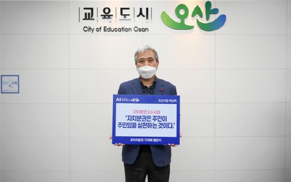 °û»ó¿í ¿À»ê½ÃÀåÀº ¡°ÀÚÄ¡ºÐ±Ç 2.0½Ã´ë´Â ÁÖ¹ÎÁ᫐ Áö¹æÀÚÄ¡ÀÇ °³¸·À̸ç, ÁøÁ¤ÇÑ ÀÚÄ¡ºÐ±ÇÀº ÁÖ¹ÎÀÌ ÁÖÀÎÀÓÀ» ½ÇõÇÏ´Â °ÍÀÌ´Ù.¡±¶ó¸ç ¾ÕÀ¸·Î ´õ¿í ¼º¼÷µÈ Áö¹æÀÚÄ¡ÀÇ ¹ßÀüÀ» ±â´ëÇÑ´Ù°í ¹àÇû´Ù.