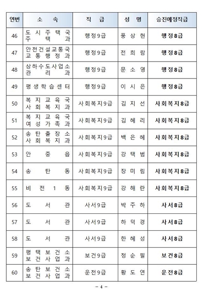 ÆòÅÃ(Ãѹ«)4±Þ ÀÌÇÏ ½ÂÁøÀÚ °áÁ¤ »çÀü ¿¹°í