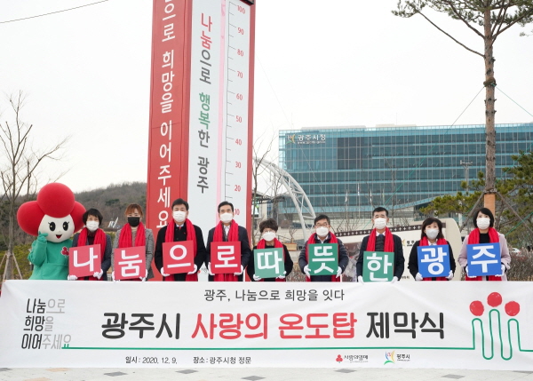 ½Ãû 1Ãþ¿¡ ¼³Ä¡µÈ ¡®»ç¶ûÀÇ ¿ÂµµÅ¾¡¯Àº ±¤ÁÖ½Ã¿Í °æ±âµµ»çȸº¹Áö°øµ¿¸ð±Ýȸ°¡ Áö³ÇØ 12¿ù 1ÀϺÎÅÍ 1¿ù 31ÀϱîÁö 5¾ï¿øÀ» ¸ñÇ¥·Î ¡®È¸¸Á 2021 ³ª´®À¸·Î ÇູÇÑ ±¤ÁÖ¡¯ Ä·ÆäÀÎÀ» ÁøÇàÇßÀ¸¸ç ¼º±Ý 6¾ï5õ657¸¸1õ¿øÀÌ ¸ð±ÝµÅ ¸ñÇ¥¾× 5¾ï¿øÀ» Èǽ ¶Ù¾î³Ñ¾ú´Ù.
