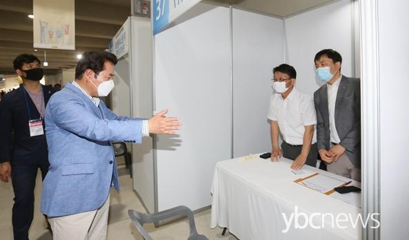 ÇÑÆí, Áö³ÇØ Àü±¹ ÁöÀÚü °¡¿îµ¥ À¯ÀÏÇÏ°Ô ½Ã°¡ °³ÃÖÇÑ »ó‧ÇϹݱ⠿ÀÇÁ¶óÀΠä¿ë¹Ú¶÷ȸ´Â °ü³» 115°³ ±â¾÷°ú 1800¿©¸íÀÇ ±¸Á÷ÀÚµéÀÌ Âü¿©ÇÏ´Â µî Å« È£ÀÀÀ» ¾ò¾ú´Ù.