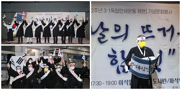 ¡®Á¦102Áֳ⠳²¾çÁÖ 3¡¤1µ¶¸³¸¸¼¼¿îµ¿ ÀçÇö Çà»ç¡¯´Â ±¹±Çȸº¹À» À§ÇØ ¹ÎÁ·ÀÚÁ¸ÀÇ °¡Ä¡¸¦ µå³ôÀÎ ¼±¿­µéÀÇ °í±ÍÇÑ Èñ»ýÀ» µÇ»õ±â°í ½Ã¹ÎµéÀÇ ÀÚ±à½É°ú ¾Ö±¹½ÉÀ» °í¾çÇϱâ À§ÇØ ±âȹµÈ ±â³äÇà»ç·Î, ¸Å³â 3¡¤1Àý ÇÏ·ç Àü³¯ Àú³á¿¡ ¿­·ÈÀ¸³ª Áö³­ÇØ¿¡´Â Äڷγª19 È®»ê ¿©ÆÄ·Î Ãë¼ÒµÈ ¹Ù ÀÖ´Ù.