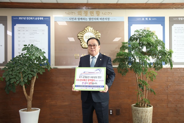 ¾È¼º½ÃÀÇȸ ½Å¿øÁÖ ÀÇÀå, ¡®¼öµµ±Ç³»·ú¼± ±¹°¡Ã¶µµ¸Á ±¸Ãà°èȹ ¹Ý¿µ 縰Áö' µ¿Âü