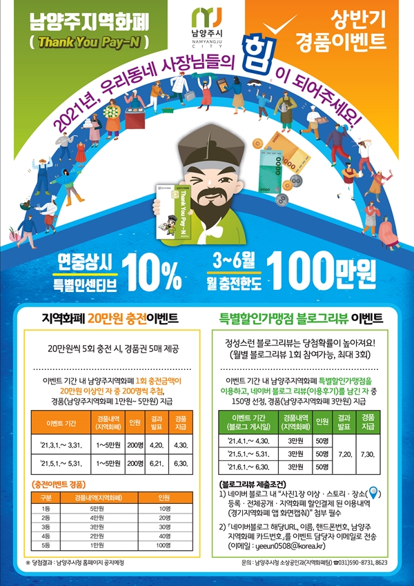 4ÀÏ ½Ã´Â 3¿ù~6¿ù ³²¾çÁÖÁö¿ªÈÆó(Thank You Pay-N) Ưº°Àμ¾Æ¼ºê(10%) ¿ù ÃæÀü Çѵµ¾×À» 100¸¸ ¿øÀ¸·Î »óÇâÇÏ°í »ó¹Ý±â °æÇ°À̺¥Æ®¸¦ ½Ç½ÃÇÑ´Ù°í ¹àÇû´Ù.