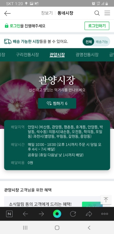 À̹ø ¼­ºñ½º °³½Ã·Î ¾È¾ç½Ã¹ÎÀº ´©±¸³ª Á÷Á¢ ÀüÅë½ÃÀå¿¡ °¡Áö ¾Ê¾Æµµ ¼ö»ê¹°, À°·ù, ¶±, ¹ÝÂù µî 5°³ ½ÃÀåÀÇ 101°³ Á¡Æ÷, 1,409°³ ǰ¸ñÀ» Áý¿¡¼­ ¹è¼Û¹ÞÀ» ¼ö ÀÖ°Ô µÆ´Ù.