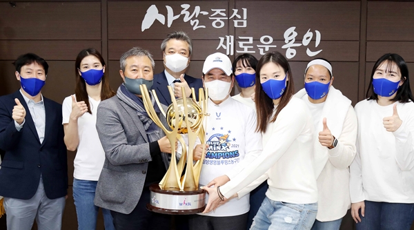 23ÀÏ ¹é±º±â ¿ëÀνÃÀåÀº ½Ãû ½ÃÀå½Ç¿¡¼ 2020~2021 ¿©ÀÚÇÁ·Î³ó±¸(WKBL)¿¡¼ ¿ì½ÂÀ» °ÅµÐ ¿ëÀλZ»ý¸í ºí·ç¹Ö½º ¼±¼ö´ÜÀ» ÃÊÃ»ÇØ ÃàÇÏÀλ縦 ÀüÇÏ°í °Ý·ÁÇß´Ù.
