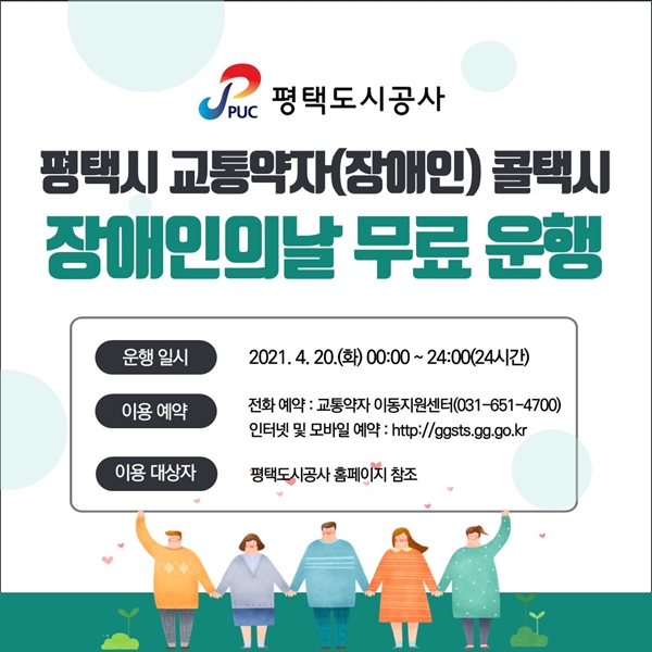 ÆòÅõµ½Ã°ø»ç´Â ¿À´Â 20ÀÏ, Á¦41ȸ Àå¾ÖÀÎÀÇ ³¯À» ¸Â¾Æ ÇÏ·ç µ¿¾È ±³Åë¾àÀÚÀÇ À̵¿ÆíÀǸ¦ Á¦°øÇϱâ À§ÇØ ÆòÅýà ±³Åë¾àÀÚ(Àå¾ÖÀÎ) ÄÝÅýø¦ ¹«·á·Î ¿îÇàÇÑ´Ù.