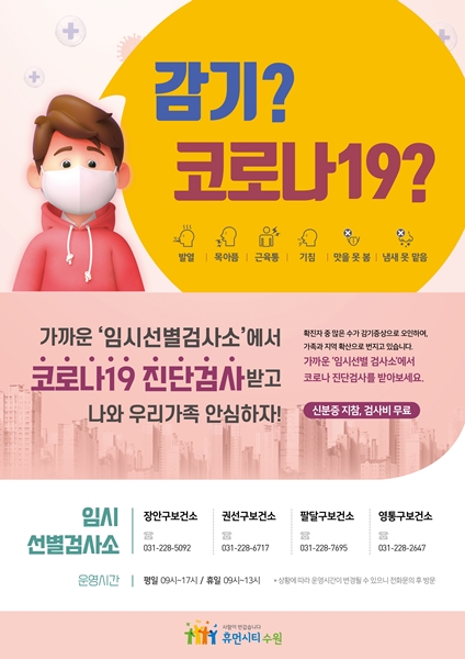 ¼ö¿ø½Ã°¡ °ü³» º´¿ø¡¤¾à±¹ µî¿¡ ¿°Å¿µ ½ÃÀåÀÇ ¼ÇѰú Äڷγª19 Áø´Ü°Ë»ç µ¶·Á È«º¸¹°À» Àü´ÞÇϰí, ¡°À¯Áõ»óÀÚ°¡ ã¾Æ¿À¸é Äڷγª19 Áø´Ü°Ë»ç¸¦ °·ÂÇÏ°Ô ±Ç°íÇØ ´Þ¶ó¡±°í ´çºÎÇß´Ù.