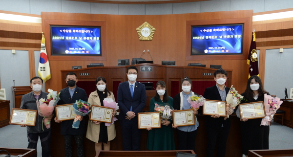 ¿À»ê½ÃÀÇȸ(ÀÇÀå ÀåÀμö)´Â 20ÀÏ ÀÇȸ º»È¸ÀÇÀå¿¡¼ ¡¸Á¦41ȸ Àå¾ÖÀÎÀÇ ³¯¡¹À» ¸ÂÀÌÇÏ¿© ±×µ¿¾È Àå¾ÖÀÎ º¹Áö¹ßÀü¿¡ ±â¿©ÇÑ À¯°øÀÚ 7¸í¿¡°Ô ǥâÀåÀ» ¼ö¿©ÇÏ¿´´Ù.