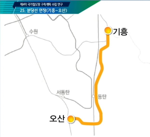 ¿À»ê½Ã(½ÃÀå °û»ó¿í)°¡ °ÇÀÇÇÑ ºÐ´ç¼± ¿À»ê~µ¿Åº~±âÈï ±¸°£ ¿¬ÀåÀÌ ¿ÃÇØºÎÅÍ 10³â°£ ±¹°¡Ã¶µµ°èȹÀ» ´ãÀº ¡®Á¦4Â÷ ±¹°¡Ã¶µµ¸Á ±¸Ãà°èȹ¾È(2021~2030)¡¯¿¡ ½Å±Ô»ç¾÷À¸·Î ¹Ý¿µµÆ´Ù.