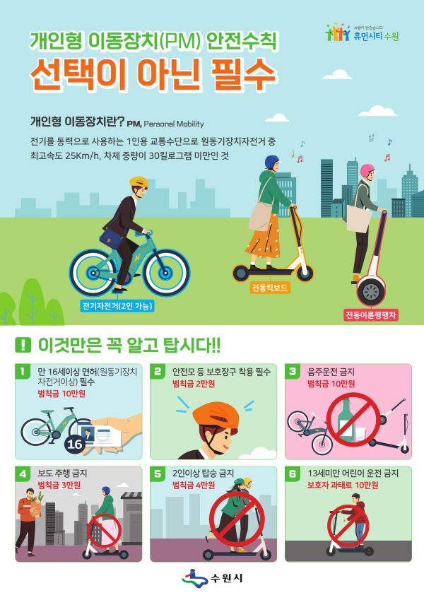 ¼ö¿ø½Ã¹ÎµéÀÌ Àüµ¿Å±º¸µå¿Í Àü±âÀÚÀü°Å µî °³ÀÎÇü À̵¿ÀåÄ¡(PM, Personal Mobility)¸¦ º¸´Ù ¾ÈÀüÇÏ°Ô ÀÌ¿ëÇÒ ¼ö Àִ ȯ°æÀ» Á¶¼ºÇϱâ À§ÇØ ¼ö¿ø½Ã°¡ ´Ù¾çÇÑ ÀÎÇÁ¶ó Á¤ºñ¿¡ ³ª¼±´Ù.