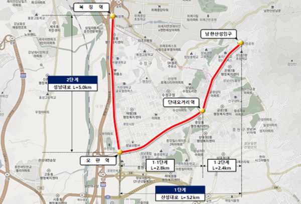 ¼º³²½Ã(½ÃÀå Àº¼ö¹Ì)´Â »ê¼º´ë·Î S-BRT »ç¾÷(L=5.2km, ¸ð¶õ¿ª~³²Çѻ꼺ÀÔ±¸)À» ¼º³²´ë·Î(L=5.0km, ¸ð¶õ¿ª~º¹Á¤¿ª)±îÁö È®´ëÇÏ°í »ç¾÷±â°£µµ ´ÜÃà ÃßÁøÇÑ´Ù.