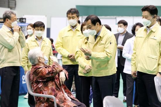 ÇöÀå¿¡¼ Àå ÀÇÀåÀº Çѱ¹°Ç°°ü¸®Çùȸ °æ±âµµÁöºÎ ÀÌ¿µ¼ø ¿øÀå°ú °æ±âµµ ¹× ¼ö¿ø½Ã µî À¯°ü±â°ü Áúº´Á¤Ã¥ °ü°èºÎ¼ ´ã´çÀÚ¸¦ ¸¸³ª °æ±âµµ Äڷγª19 ¿¹¹æÁ¢Á¾ ÃßÁøÇöȲÀ» Á¡°ËÇÏ°í ¿¹¹æÁ¢Á¾À» À§ÇØ ¹æ¹®ÇÑ µµ¹ÎµéÀ» °Ý·ÁÇß´Ù.