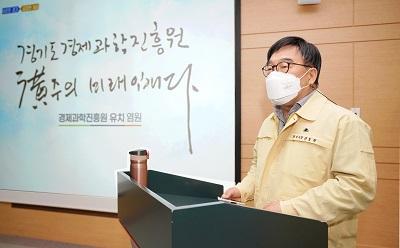 ±¤Áֽô °æ±âµµ°æÁ¦°úÇÐÁøÈï¿ø À¯Ä¡¸¦ À§ÇØ ÃÖÁ¾½É»ç¿¡ ½Åµ¿Çå ½ÃÀåÀÌ Á÷Á¢ ¹ßÇ¥ÀÚ·Î ³ª¼±â·Î °áÁ¤Çϸç, °æ°ú¿ø À¯Ä¡È°µ¿ ¸·¹ÙÁö ¿îµ¿¿¡ µé¾î°¬´Ù°í 21ÀÏ ¹àÇû´Ù.