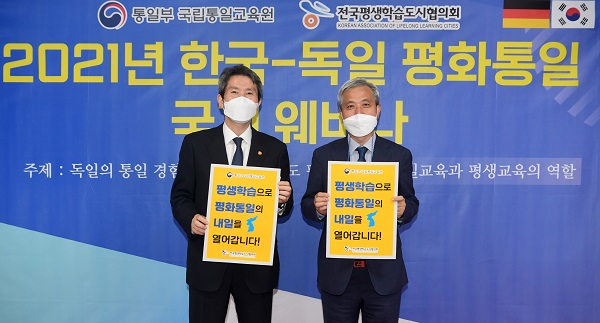 Àü±¹Æò»ýÇнÀµµ½ÃÇùÀÇȸ ȸÀå °û»ó¿í ¿À»ê½ÃÀåÀº 5¿ù 27ÀÏ ¿ÀÈÄ 4½Ã ÅëÀϺΠ±¹¸³ÅëÀϱ³À°¿ø(¿øÀå ¹éÁرâ)¿¡¼­ ¡¸2021 Çѱ¹-µ¶ÀÏ ÆòÈ­¡¤ÅëÀÏ ±¹Á¦ ¿þºñ³ª¡¹¸¦ °³ÃÖÇß´Ù. À̹ø Çà»ç´Â Áö³­ÇØ ¸», ÇùÀÇȸ°¡ ±³À°¿ø°ú ¾÷¹«Çù¾àÀ» ü°áÇÑ ÀÌÈÄ °øµ¿À¸·Î ÃßÁøÇÏ´Â »ç¾÷À¸·Î ÅëÀϱ³À°ÁÖ°£À» °è±â·Î ¸¶·ÃµÆ´Ù.