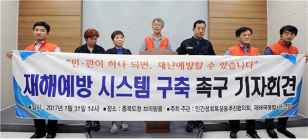 2017³â 7¿ù ÃæºÏÁö¿ªÀÇ È£¿ì ¼öÇØ¸¦ °è±â·Î Àç³ ¿¹¹æ½Ã½ºÅÛ µµÀÔÀ» Á¦¾ÈÇÏ´Â ±âÀÚȸ°ß 2017³â 7¿ù 31ÀÏ ÃæºÏµµÃ» ±âÀڽǿ¡¼ ÀÎÃßÇù µî ½Ã¹Î´Üü Ȱµ¿°¡ ÁÖÃÖ·Î À糿¹¹æ½Ã½ºÅÛ±¸Ãà Ã˱¸±âÀÚȸ°ßÀ» °³ÃÖÇϰí ÇàÁ¤¾ÈÀüºÎ¿Í û¿Í´ë¿¡ ±¹¹Î ¾ÈÀü ¹× »ç°í ¿¹¹æÀ» À§ÇÑ Á¤Ã¥°ÇÀǹ®À» Á¦ÃâÇÏ¿´½À´Ï´Ù. ±× ÀÌÈÄ ¿µÈïµµ ³¬½Ã¹è Àüº¹»ç°í, Á¦Ãµ½ºÆ÷Ã÷¼¾ÅÍ ÈÀç, ¹Ð¾ç¼¼Á¾º´¿ø ÈÀç µîÀÇ Àç³À» °ÞÀ¸¸é¼ 2018³â 2¿ù 1ÀÏ Á¤ºÎ Àç³ ¾ÈÀü ´ëÀÀ ½Ã½ºÅÛ °È¸¦ Ã˱¸ÇÏ´Â ±âÀÚȸ°ßÀ» °³ÃÖÇÏ¿´°í 2018³â 4¿ù 16ÀÏ ¼¼¿ùÈ£ Âü»ç 4ÁÖ³âÀÌ µÇ´Â ³¯¿¡ Àç³¾ÈÀü Á¤Ã¥ °ÇÀǹ®À» Á¤ºÎ¿¡ Á¦ÃâÇÏ¿© ÇàÁ¤¾ÈÀüºÎÀÇ ´äº¯µµ ¹Þ¾Ò¾ú½À´Ï´Ù.