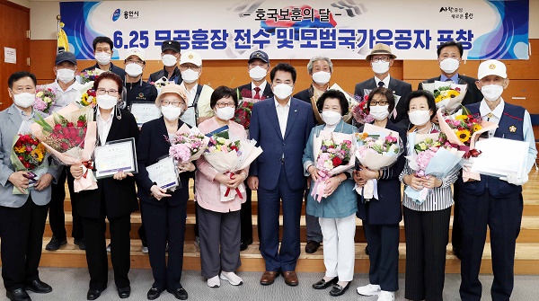 À̳¯ ¹é±º±â ¿ëÀνÃÀåÀº ¿ëÀνÃû ºñÀüȦ¿¡¼ ¿¸° ¡®6¡¤25 ¹«°øÈÆÀå Àü¼ö ¹× ¸ð¹ü ±¹°¡À¯°øÀÚ Ç¥Ã¢Àå ¼ö¿©½Ä¡¯¿¡¼ 6¡¤25ÀüÀï¿¡ ÂüÀüÇØ ¹«°øÀ» ¼¼¿î °í(ͺ) ±è´ö¶ô ÀϺ´(9»ç´Ü)ÀÇ ÀÚ³à ±èµ¿Áø ¾¾(66¡¤Ã³Àα¸ ¿ø»ï¸é)¿¡°Ô ±¹¹æºÎ¸¦ ´ë½ÅÇØ ȶû¹«°øÈÆÀåÀ» Àü´ÞÇß´Ù.