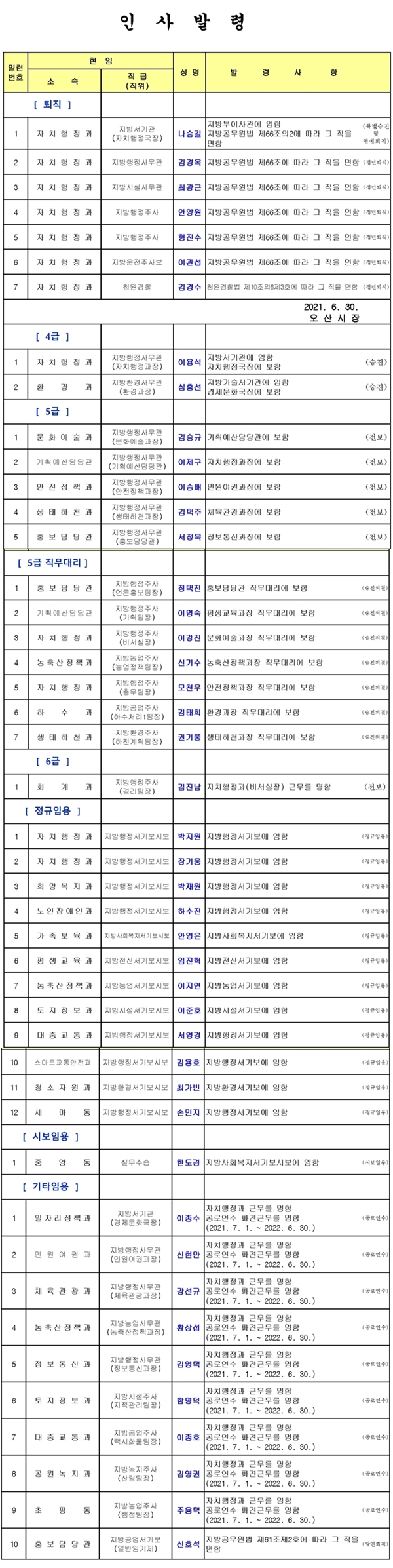 ¿À»ê½Ã Àλç¹ß·É (2021.6.29. ¹× 7.1.í®)