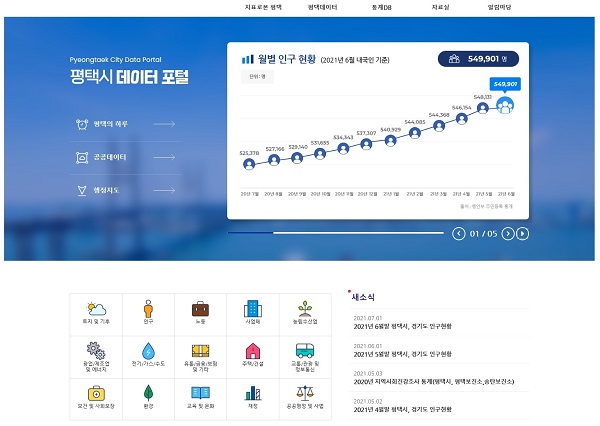 ÆòÅý𡠽ùεéÀÌ Åë°è, °ø°øµ¥ÀÌÅÍ µîÀÇ Á¤º¸¸¦ ½±°í Æí¸®ÇÏ°Ô Ã£¾Æ Ȱ¿ëÇÒ ¼ö ÀÖµµ·Ï ÆòÅýà µ¥ÀÌÅÍ Æ÷ÅÐ(www.pyeongtaek.go.kr/data)À» »õ·Ó°Ô ±¸ÃàÇØ ¿À´Â 20ÀϺÎÅÍ ¼ºñ½º ÇÑ´Ù°í ¹àÇû´Ù.