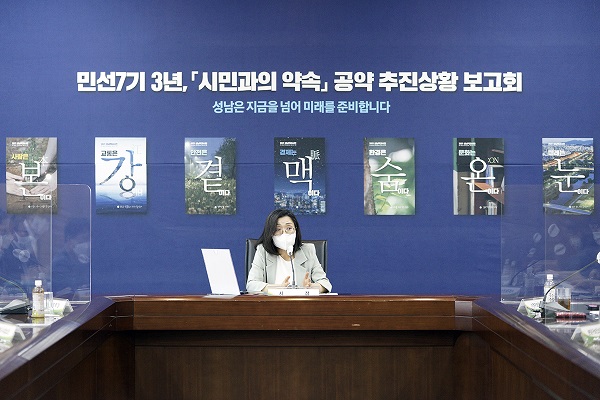 À̳¯ º¸°íȸ¿¡¼ Àº¼ö¹Ì ¼º³²½ÃÀåÀº ¡°¼º³²½Ã´Â ¾Æ½Ã¾Æ½Ç¸®Äܹ븮 ÇÁ·ÎÁ§Æ®, ºòµ¥ÀÌÅÍ ±â¹ÝÀÇ »ýȰ ¹× °ø°øÁ¤º¸ È®´ë, »çȸ °èÃþº° ÀÏÀÚ¸® È®´ë µî ¾î·Á¿î °ø¾àÀÌ ¸¹Àºµ¥µµ °¢ ºÎ¼º°·Î Àß ÃßÁøÇϰí ÀÖÀ¸¸ç, ½Ã¹Î°úÀÇ ¾à¼ÓÀÌ ¼º°øÀûÀ¸·Î ¸¶¹«¸® µÉ ¼ö ÀÖµµ·Ï ¸¶Áö¸·±îÁö ÃÖ¼±À» ´ÙÇØ´Þ¶ó¡±¶ó¸ç ´çºÎÀÇ ¸»À» ÀüÇß´Ù.