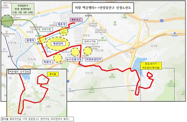 °³ÅëÀ» ¾ÕµÐ 33¹ø ¹ö½º´Â ÆòÃÌÂ÷°íÁö¸¦ ±âÁ¡À¸·Î ÆòÃÌ¿ª ¡ ¾È¾ç½Ãû ¡ ¹ü°è¿ª ¡ ¹ü°èÁßÇб³ ¡ ±ÍÀÎÃʵîÇб³ ¡ ·Ôµ¥¸¶Æ® ¡ ¹é¿î¹ë¸®¸¦ °ÅÃÄ Á¾Á¡ÀÎ 9¿ù¿¡ °³Àå ¿¹Á¤ÀÎ ·Ôµ¥¸ô ÀÇ¿ÕÁ¡À» ¿¬°áÇÏ´Â ¿Õº¹ 23.8km±¸°£ÀÌ´Ù.