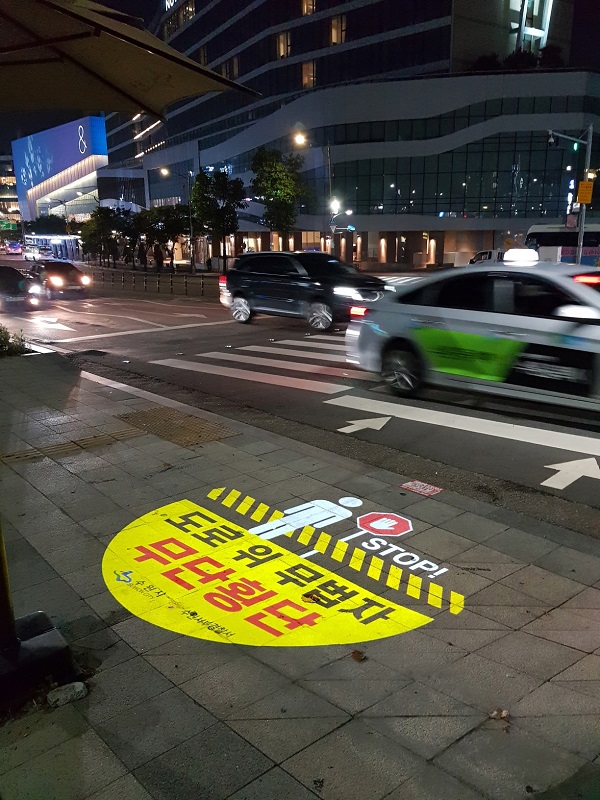 ¼ö¿ø½Ã¿Í ¼ö¿ø¼ºÎ°æÂû¼, Çѱ¹±³Åë¾ÈÀü°ø´Ü °æ±â³²ºÎº»ºÎ´Â ÇÔ²² ÇöÀå °ËÅ並 Çϰí, º¸ÇàÀÚ¿Í Â÷·® ÅëÇàÀÌ Àæ¾Æ ±³Åë»ç°í À§Ç輺ÀÌ ³ôÀº Ⱦ´Üº¸µµ 3°÷À» ·Î°íÁ§ÅÍ ¼³Ä¡ Àå¼Ò·Î ¼±Á¤ÇÏ°í ·Î°íÁ§Å͸¦ ÀÌ¿ëÇØ ¾ß°£¿¡ ¡®¹«´ÜȾ´Ü ±×¸¸!¡¯, ¡®¹«´ÜȾ´Ü ÇÏÁö¸¶¼¼¿ä.¡¯, ¡®µµ·Î À§ ¹«¹ýÀÚ ¹«´ÜȾ´Ü¡¯ µî ¹®±¸¿Í À̹ÌÁö µîÀ» ¿ø»öÀ¸·Î Åõ¿µÇÑ´Ù.
