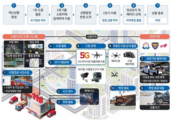 ´ÙÁß°üÁ¦½Ã½ºÅÛÀº ÈÀç, ±³Åë»ç°í µî Àç³ ¹ß»ý ¶§ ÃÔ¿µ¿ë ¼¾¼¸¦ ÀåÂøÇÑ µå·ÐÀÌ ÇöÀåÀ¸·Î Áï°¢ ³¯¾Æ°¡ Àç³ »óȲÀ» ½Ç½Ã°£ ¿µ»óÀ¸·Î ¼º³²½Ã¿Í ¼º³²¡¤ºÐ´ç¼Ò¹æ¼, ¼öÁ¤¡¤Áß¿ø¡¤ºÐ´ç°æÂû¼, ±ººÎ´ë(À°±º 55»ç´Ü)¿¡ Àü¼ÛÇÑ´Ù.