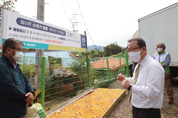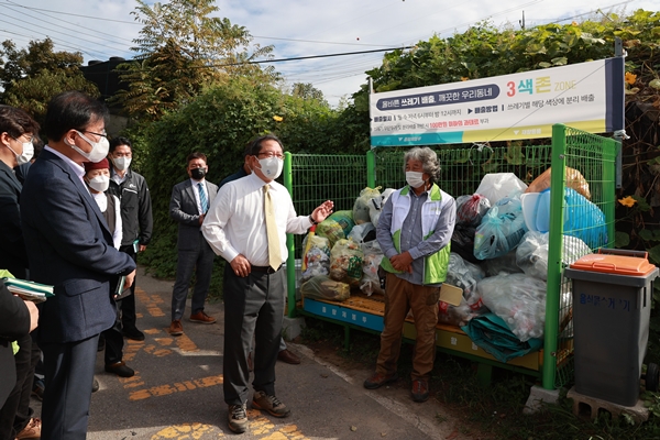 ÀÌ¿¡ Á¶ ½ÃÀåÀº ¡°¿ì¸® ½Ã´Â ¾²·¹±â ¹®Á¦¸¦ °³¼±Çϱâ À§ÇØ ¸¹Àº ³ë·ÂÀ» ±â¿ïÀ̰í ÀÖ´Ù. ±× Áß ÇϳªÀÎ »ï»öÁ¸Àº °¢ À¾¡¤¸é¡¤µ¿ ½ÇÁ¤¿¡ ¸Â°Ô 1´Ü°è ¹öÀüºÎÅÍ 4´Ü°è ¹öÀü±îÁö ¾÷±×·¹À̵åµÈ »ï»öÁ¸ÀÌ ¼³Ä¡µÅ ¿©·¯ °¡Áö ¹æ¾ÈÀÌ ´Ù¾çÇÏ°Ô ³ª¿À¸ç ÁÁÀº È¿°ú¸¦ º¸°í ÀÖ´Ù.¡±¶ó¸ç ¡°À¾¡¤¸é¡¤µ¿Àå ¶ÇÇÑ ¼øÂû ½Ã Ãë¾àÁö¿¡ ´ëÇØ °ü°è ºÎ¼¿Í ÇùÀÇÇØ¼ ²É¹ç Á¶¼ºÀ̳ª Ç÷αë Ȱµ¿ µî ü°èÀûÀ̰í Áö¼ÓÀûÀÎ ³ë·ÂÀÌ ÇÊ¿äÇÏ´Ù.¡±¶ó°í ´çºÎÇß´Ù.