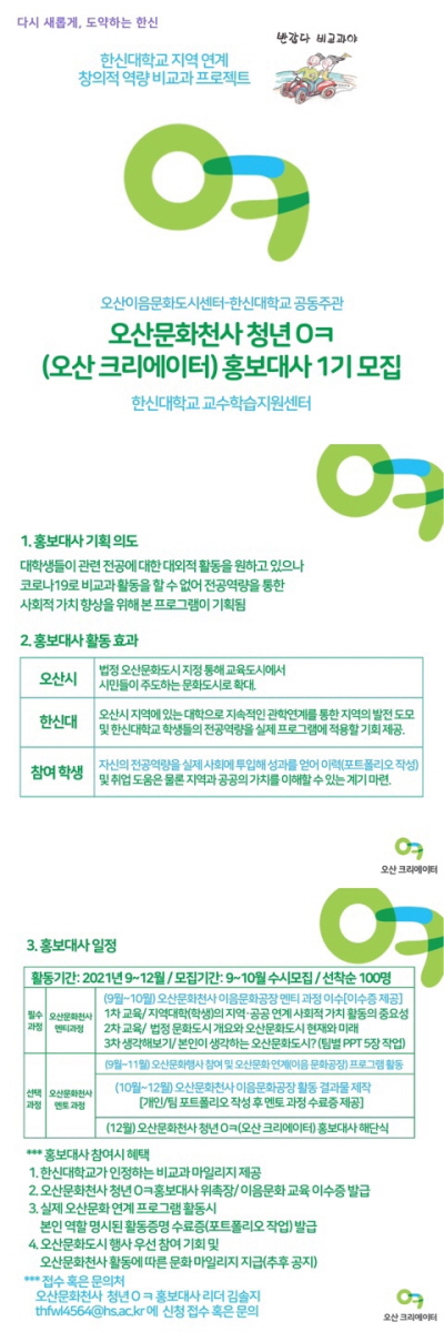 ¿À»ê½Ã, '¿À»ê ¹®Èµµ½Ã ÃßÁø û³â Å©¸®¿¡ÀÌÅÍ È«º¸´ë»ç' ¸ðÁýÇÕ´Ï´Ù -ÇѽŴëÇб³ Çù·Â»ç¾÷ |