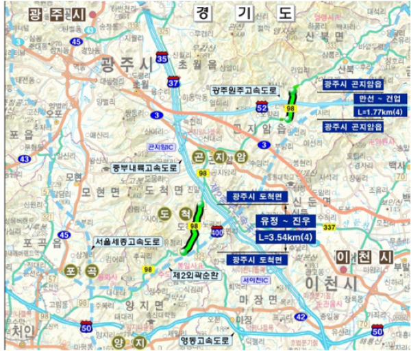 ±¹Åä±³ÅëºÎ°¡ ¹ßÇ¥ÇÑ ¡®Á¦5Â÷ ±¹µµ¡¤±¹Áöµµ °Ç¼³°èȹ(¡¯21³â~¡®25³â)¡¯ÀÇ 116°³ ±¸°£ Áß ±¤Áֽô ±¹Áöµµ 98È£¼± 2°³ ±¸°£ÀÌ Æ÷ÇÔµÆÀ¸¸ç ¸¸¼±~°Ç¾÷ °£ È®Àå°ø»ç(1.8§°, 4Â÷·Î È®Àå, ÃÑ»ç¾÷ºñ 255¾ï¿ø), À¯Á¤~Áø¿ì °£ È®Àå°ø»ç(3.5§°, 4Â÷·Î È®Àå, ÃÑ»ç¾÷ºñ 399¾ï¿ø) ±¸°£ÀÌ °¢°¢ ÃßÁøµÈ´Ù.