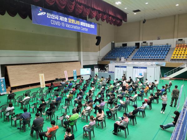 Áö³ 28ÀÏ ¿ÀÈÄ 6½Ã ±âÁØ, ¾È»ê½Ã Á¢Á¾´ë»ó Àα¸ 64¸¸9õ312¸í °¡¿îµ¥ 52¸¸4õ458¸íÀÌ 1Â÷ Á¢Á¾À» ¿Ï·áÇϸç Á¢Á¾·üÀÌ 80.8%·Î Áý°èµÆ´Ù.