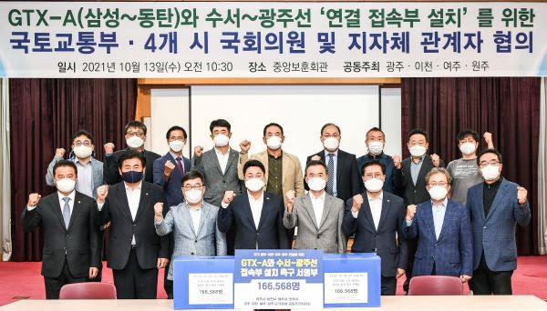 À̹ø °ü°èÀÚ ÇùÀÇ¿¡¼­´Â ½Åµ¿Çå ±¤ÁÖ½ÃÀå, ¾öÅÂÁØ ÀÌõ½ÃÀå, ÀÌÇ×Áø ¿©ÁÖ½ÃÀå, ¼Òº´ÈÆ¡¤ÀÓÁ¾¼º¡¤¼Û¼®ÁØ¡¤¼Û±âÇå ±¹È¸ÀÇ¿øÀ» ºñ·ÔÇÏ¿© 4°³ ½Ã °ü°èÀÚ¿Í GTXÀ¯Ä¡°øµ¿ÃßÁøÀ§°¡ Âü¼®Çß´Ù.