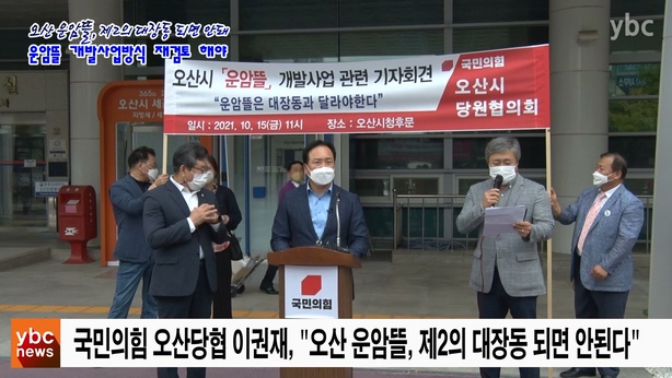 ±¹¹ÎÀÇÈû ¿À»ê½Ã ´ç¿øÇùÀÇȸ À̱ÇÀç À§¿øÀåÀº, 10¿ù15ÀÏ ¿À»ê½Ãû ÈĹ®¿¡¼ ±âÀÚȸ°ßÀ» ¿°í, ¿À»ê ¿î¾Ï¶ãÀÌ Á¦2ÀÇ ´ëÀ嵿ÀÌ µÇ¾î¼´Â ¾È µÈ´Ù´Â ¼º¸í¼¸¦ ¹ßÇ¥Çß½À´Ï´Ù.
