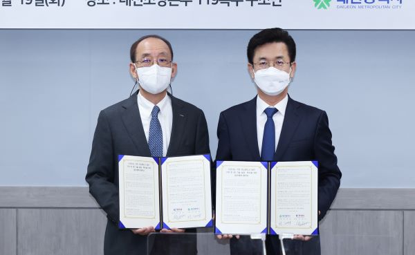 ´ëÀü½Ã´Â ¼Ò¹æºÐ¾ß R&D ±â¼ú½ÇÁõ¡¤»ç¾÷Çù·Â À§ÇØ À¯¼º±¸ ´ëÀü119Ư¼ö±¸Á¶´Ü¿¡¼ Çѱ¹ÀüÀÚÅë½Å¿¬±¸¿ø(ETRI, ¿øÀå ±è¸íÁØ)°ú 19ÀÏ ¾÷¹«Çù¾àÀ» ü°áÇß´Ù°í ¹àÇû´Ù.