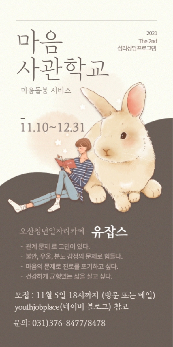 ¿À»ê½Ã°¡ û³âÀÏÀÚ¸®Ä«Æä À¯À⽺´Â û³âµéÀ» À§ÇÑ 2021³âµµ µÎ ¹øÂ° ¸ÂÃ㠽ɸ®ÇÁ·Î±×·¥¡¸Ã»³â ¸¶À½»ç°üÇб³¡¹¸¦ 11¿ù 10ÀϺÎÅÍ 12¿ù 31ÀϱîÁö ÁøÇàÇÑ´Ù°í ¹àÇû´Ù.