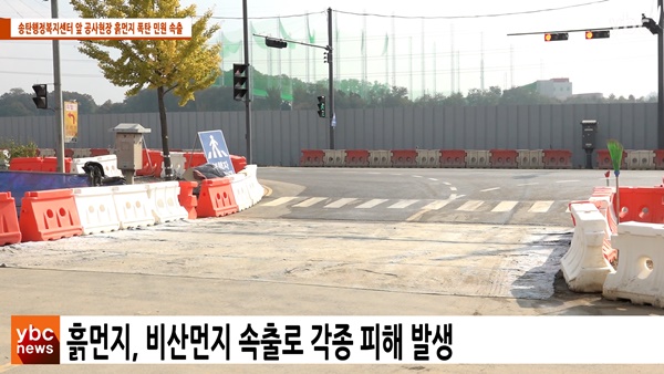 ¼Ûź ÇàÁ¤º¹Áö ¼¾ÅÍ ¾Õ °ø»çÇöÀå¿¡¼ ºñ»ê, Èë¸ÕÁö°¡ °¡µæÇØ ¹Î¿øÀÌ ¼ÓÃâÇϰí Àִµ¥¿ä,