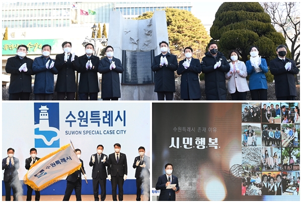 ¼ö¿øÆ¯·Ê½Ã ½Ã¹ÎÂü¿©º»ºÎ ¼±¿µ¹Ì »ç¹«±¹Àå°ú ´ëÇлý ±è¼®Çö(¼°´ë 1Çгâ)¾¾´Â ¼ö¿ø½Ã¹ÎÀ» ´ëÇ¥ÇØ ¡®¼ö¿øÆ¯·Ê½Ã ½Ã¹ÎÇåÀ塯À» ¹ßÇ¥Çϰí, ¡°´ëÇѹα¹ ¹ÎÁÖÁÖÀÇ¿Í ÀÚÄ¡ºÐ±ÇÀÇ ¿ª»ç¸¦ ¸¸µé¾î°¥ ¼ö¿øÆ¯·Ê½Ã¹ÎÀ¸·Î¼ ±× ±Ç¸®¿Í Ã¥ÀÓÀ» ÀÌ ÇåÀå¿¡ ´ã¾Æ ¼ö¿øÆ¯·Ê½Ã¸¦ ÇÔ²² ¸¸µé¾î °¡°Ú´Ù¡±°í ´ÙÁüÇß´Ù.