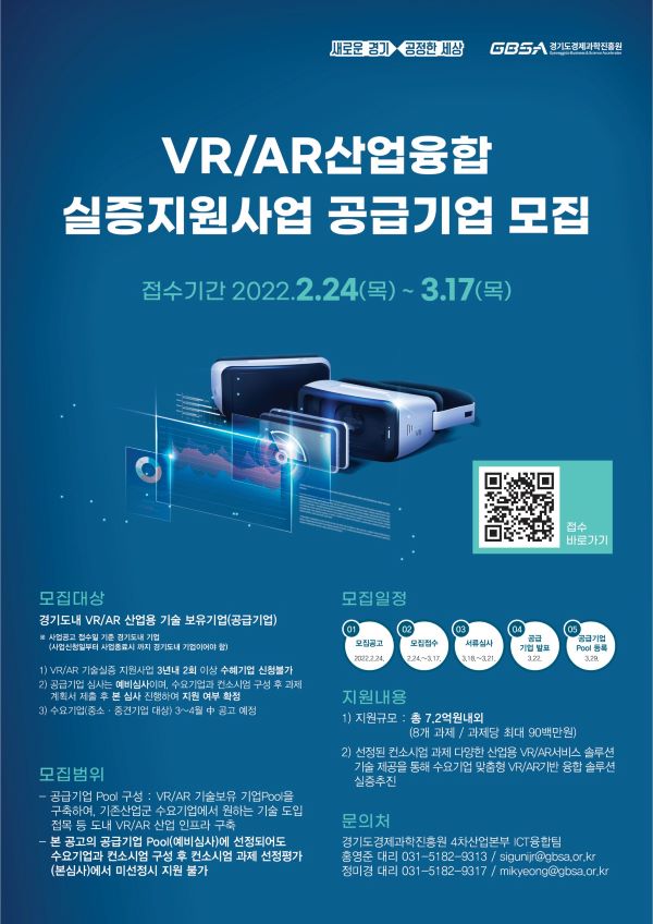 °æ±âµµ°¡ Á¦Á¶․°ÇÃà µî »ê¾÷ ºÐ¾ß Àü¹Ý¿¡ °¡»ó/Áõ°­Çö½Ç(VR/AR) ±â¼úÀ» È®´ëÇϱâ À§ÇØ ¡®°¡»ó/Áõ°­Çö½Ç(VR/AR) »ê¾÷À¶ÇÕ ½ÇÁõ Áö¿ø¡¯ »ç¾÷À» ÃßÁøÇϱâ·Î ÇÏ°í °ø±Þ±â¾÷À» ¸ðÁýÇÑ´Ù°í 28ÀÏ ¹àÇû´Ù.