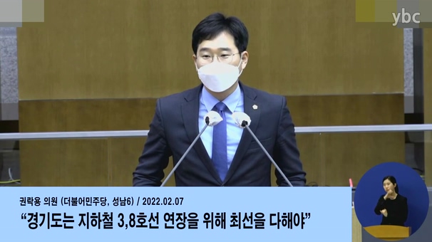 Á¦357ȸ °æ±âµµÀÇȸ Á¦1Â÷ º»È¸ÀÇ 5ºÐ¹ß¾ð - ±Ç¶ô¿ë ÀÇ¿ø °æ±âµµÀÇȸ ±Ç¶ô¿ë ÀÇ¿ø,(´õºÒ¾î¹ÎÁÖ´ç, ¼º³²6) ¡°°æ±âµµ´Â ÁöÇÏö 3¡¤8È£¼± ¿¬ÀåÀ» À§ÇØ ÃÖ¼±À» ´ÙÇØ¾ß¡± |