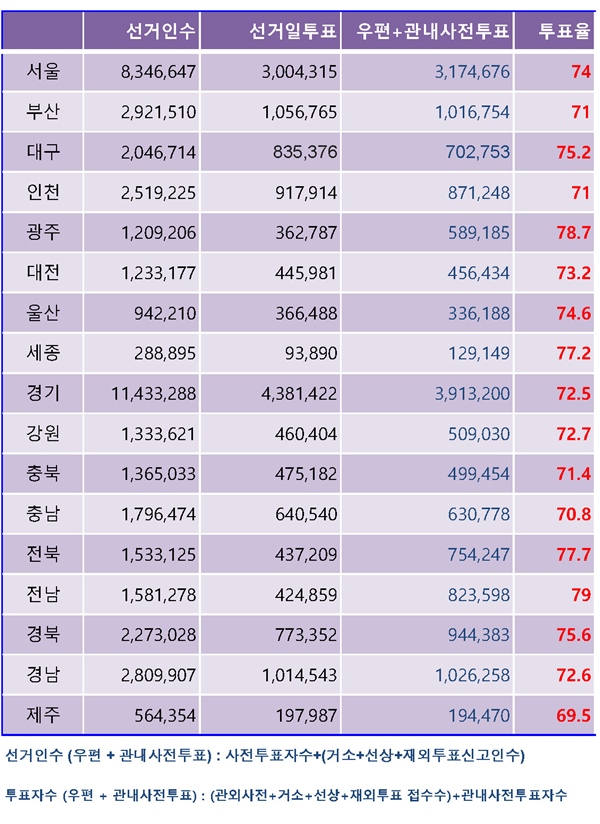 Àü±¹ ÅõÇ¥À² 17½Ã ±âÁØ 73.4%