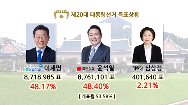 [¼Óº¸] Á¦20´ë ´ëÅë·É¼±°Å °³Ç¥»óȲ - 10ÀÏ 0½Ã30ºÐ ÀÌÈÄ À±¼®¿­ ¾Õ¼­