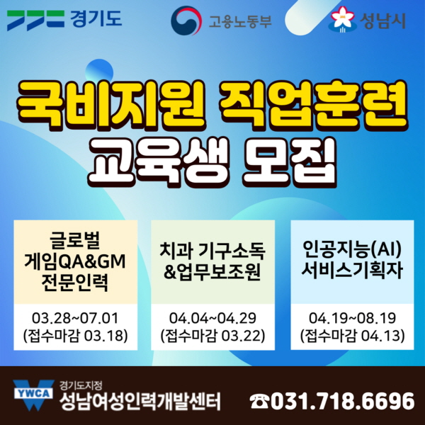 ¼º³²½Ã, °ÔÀÓ¡¤AI¡¤Ä¡°ú ºÐ¾ß 80¸í Á÷¾÷ÈÆ·Ã ¡®¹«·á¡¯ -¼º³²¿©¼ºÀη°³¹ß¼¾ÅÍ ¿î¿µ |