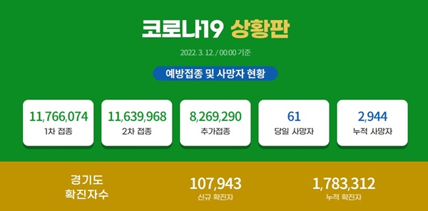 °æ±âµµ ¹é½ÅÁ¢Á¾ ´©Àû¼ö ÇöȲÀº 1Â÷ 11,766,074¸í(87.3%), 2Â÷ 11,639,968¸í(86.3%), 3Â÷ 8,269,290¸í(61.3%)ÀÌ´Ù.