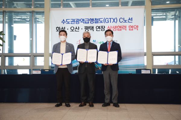 ÆòÅýô 22ÀÏ È­¼º½Ã, ¿À»ê½Ã¿Í ¼öµµ±Ç±¤¿ª±ÞÇàöµµ(GTX) C ³ë¼± È­¼º・¿À»ê・ÆòÅà ¿¬Àå »ó»ýÇù·Â Çù¾àÀ» ü°áÇϰí GTX-C³ë¼± ¿¬Àå ÃßÁø¿¡ ¸ðµç ÇàÁ¤·ÂÀ» ÁýÁßÇØ ³ª°¡±â·Î Çß´Ù.